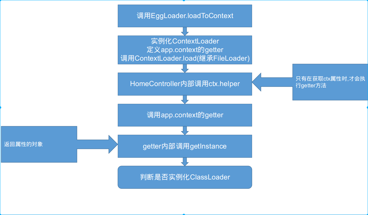 // -------- egg-core/lib/loader/egg_loader.js -------class EggLoader { ... // 将property挂载到ctx loadToContext(directory, property, opt) { opt = Object.assign({}, { directory, property, inject: this.app, }, opt);