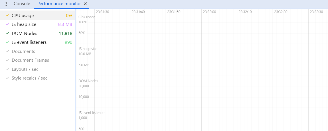 可以实时监测页面的状态,可通过 Devtools 命令面板开启