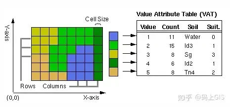 - 栅格数据:将空间分为网格,每个网格为一个单元(像素),描述每个单元的属性来描述整个空间