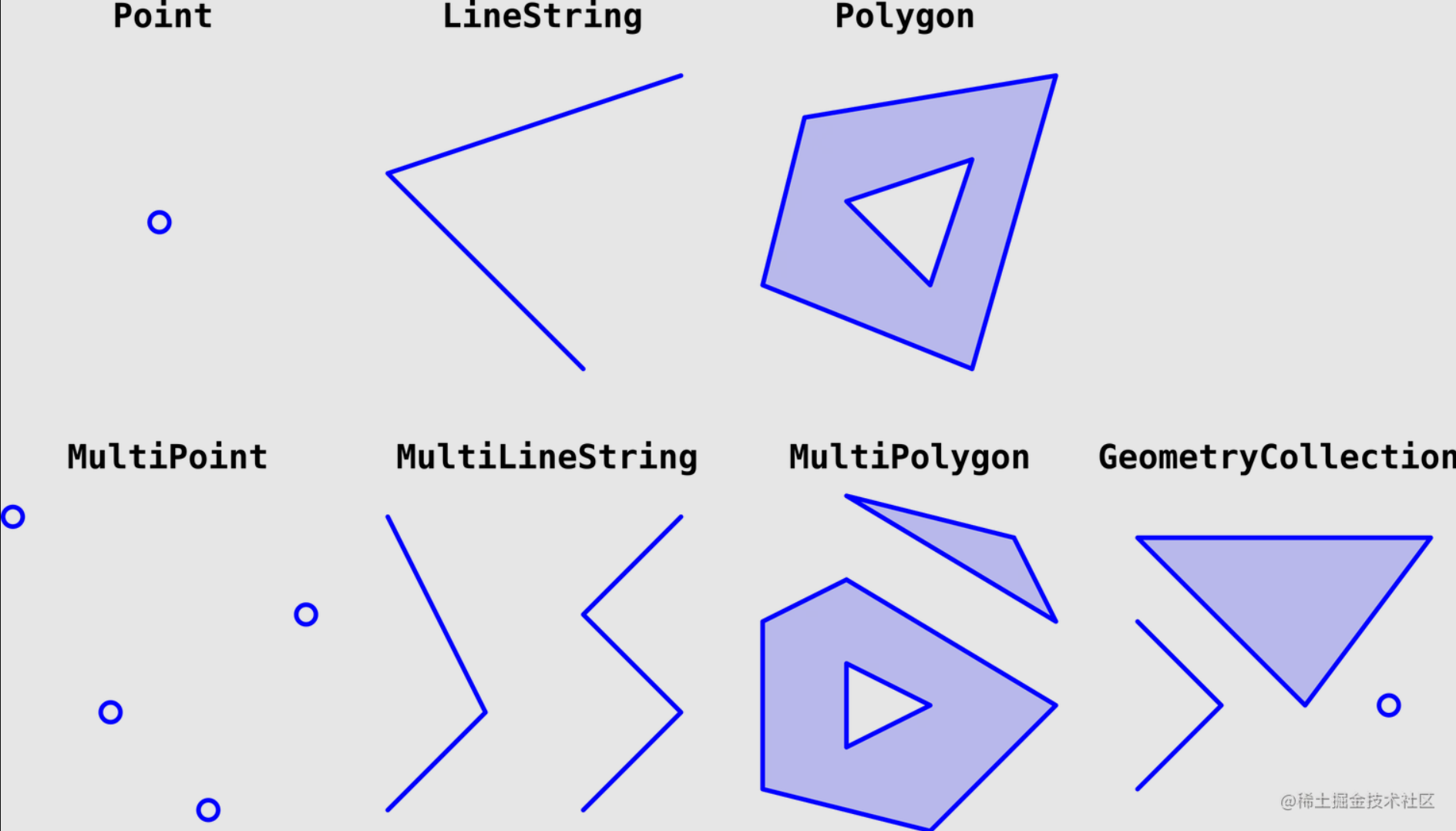 // 坐标 coordinates: [ lon,lat ]}GeometryCollection 多个几何图形集合