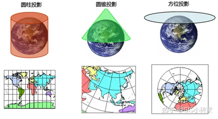 为了地图不同的用途,投影方式也不同,常用的投影方式如下