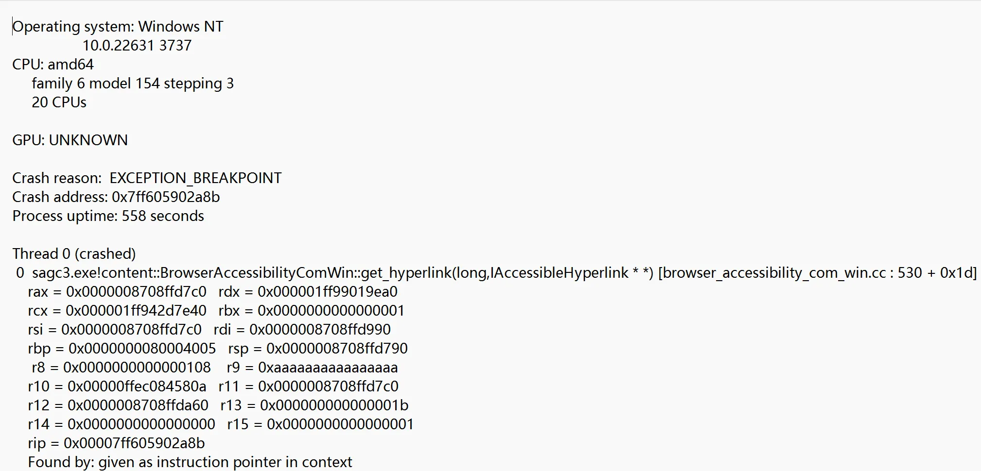 // minidumpFilePath 为 dmp 文件路径// symbolPaths 为 electron symbol 文件路径minidump.walkStack(minidumpFilePath, symbolPaths, callback);文件解析后如下所示